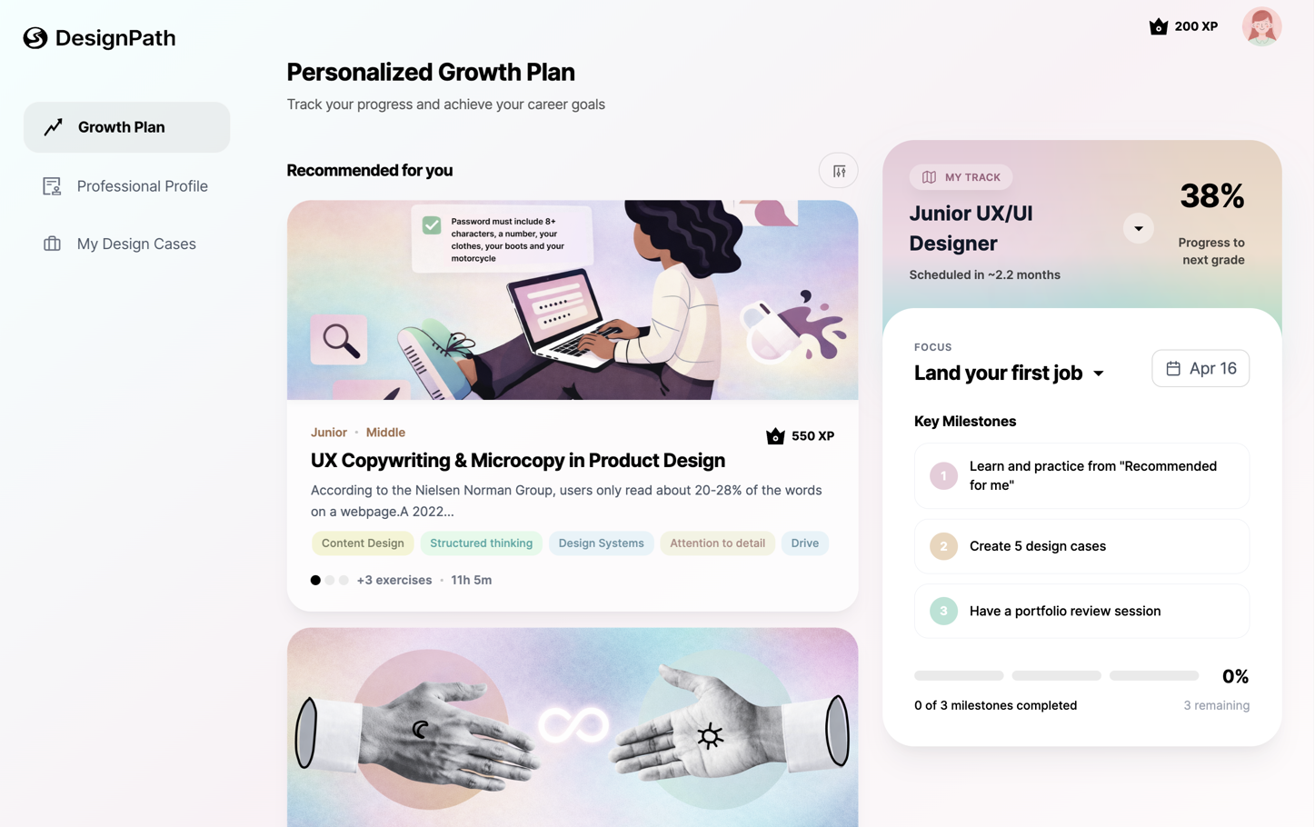 Set up your track: Product Designer or UX/UI Designer, from Junior to Lead.
