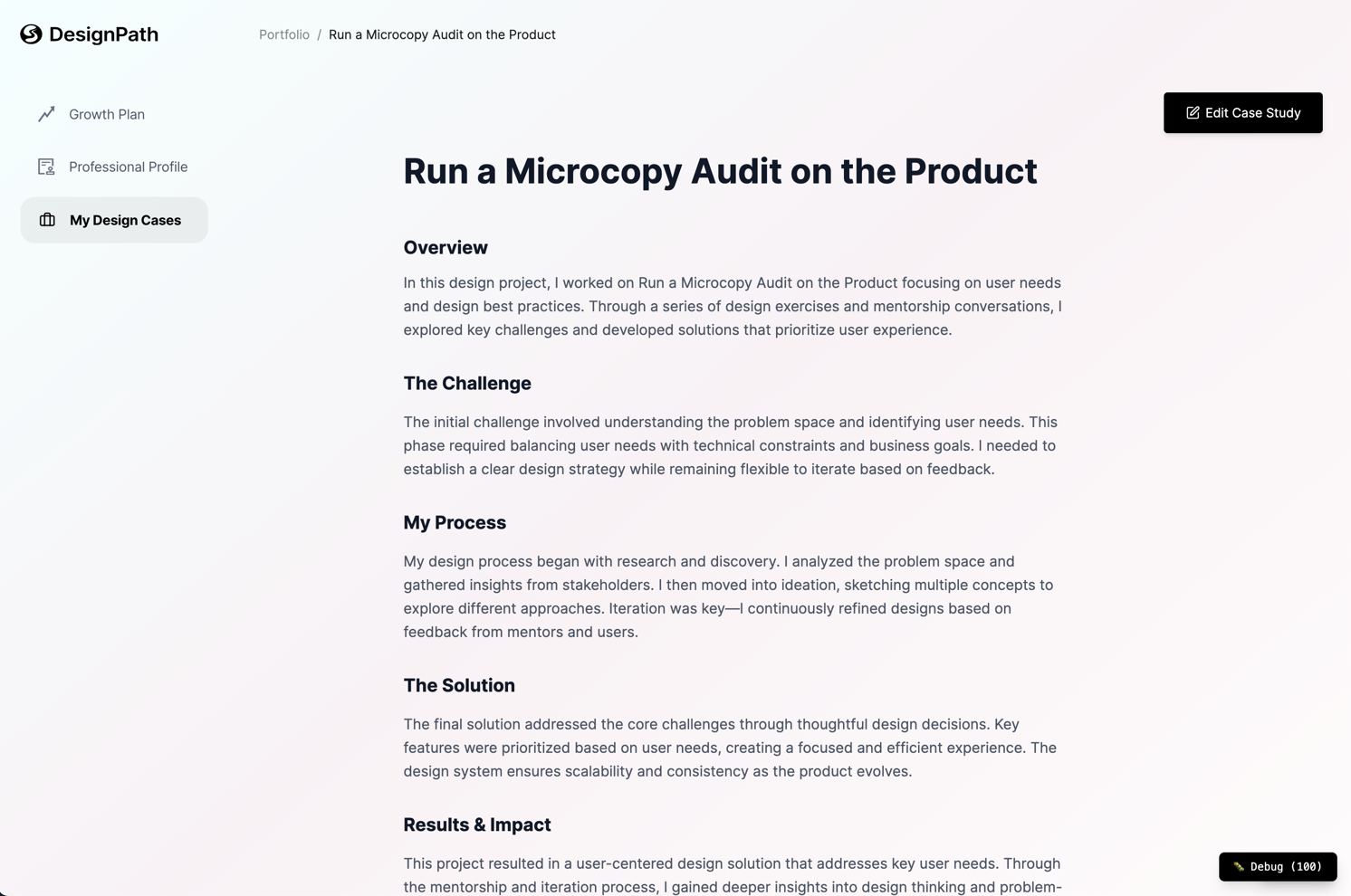 Turn your completed exercises into visually polished portfolio cases.
