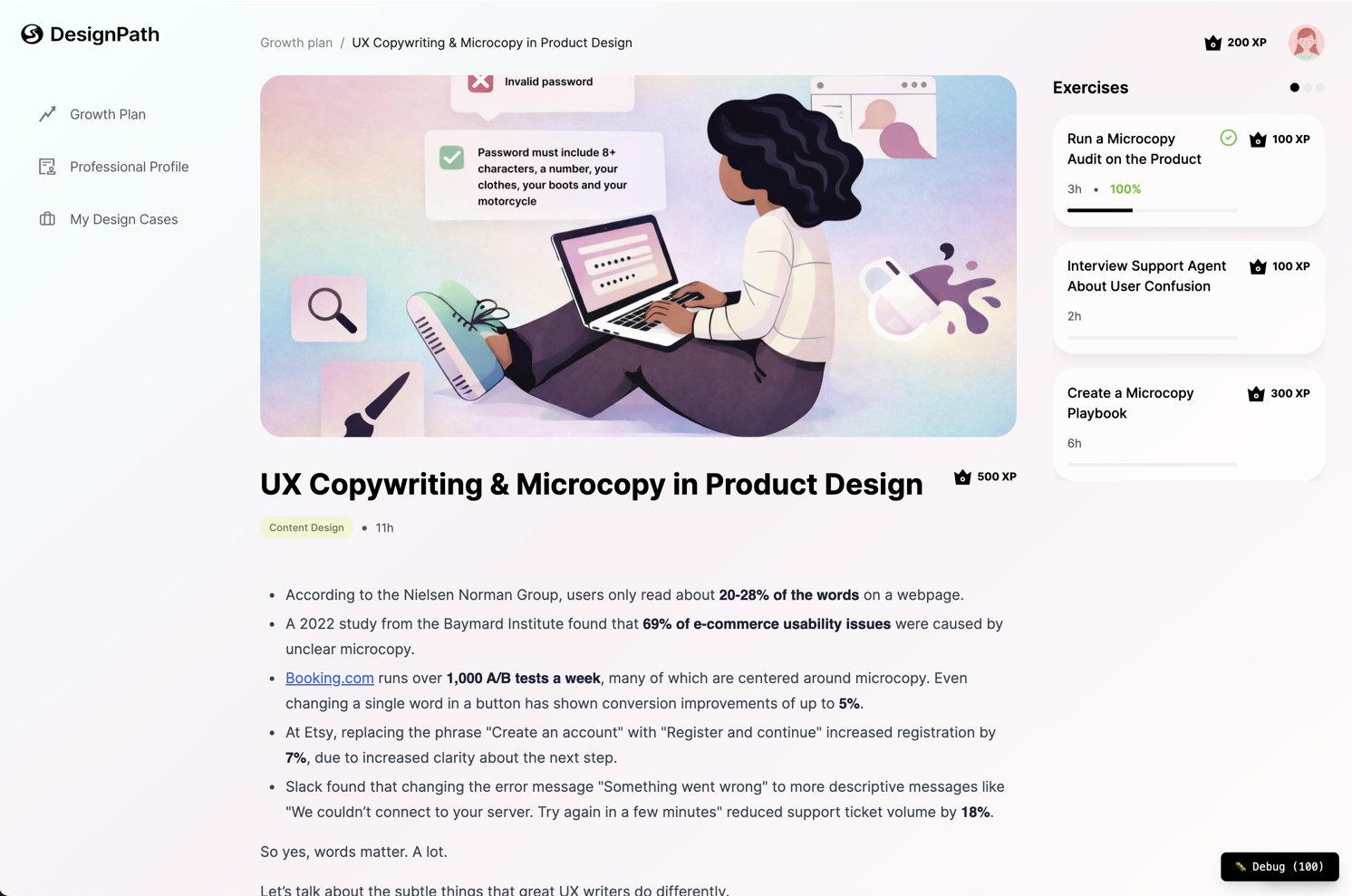 You answer a quick quiz, and it shows you where you’re strong, where you’re stuck, and give you a clear path to grow: step-by-step materials and tasks, which are relevant to your current level and goals